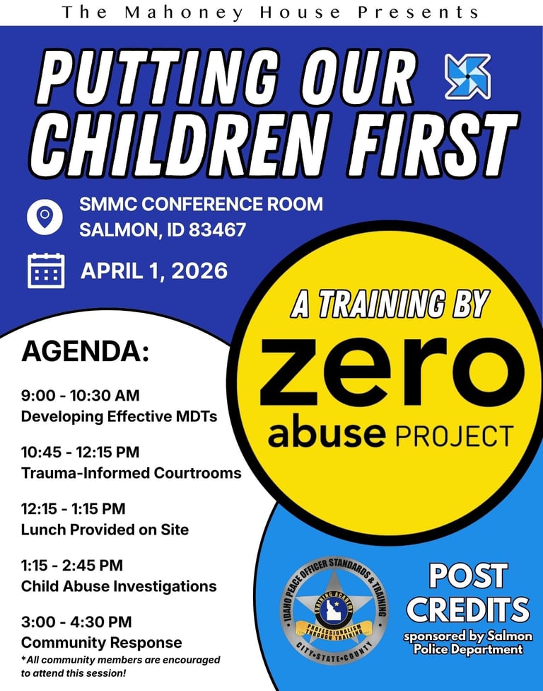 The Mahoney House is committed to hosting various events in Lemhi and Custer Counties to achieve its mission. Together, we can create a stronger, more resilient community that stands united against violence in all its forms.